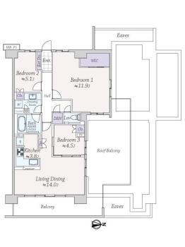 間取り 3LDK 専有面積 92.41m2(27.9坪) 壁芯