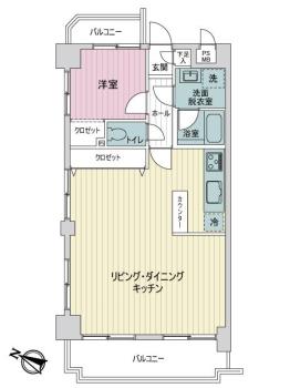 間取り 1LDK 専有面積 52.92m2(16.0坪) 壁芯
