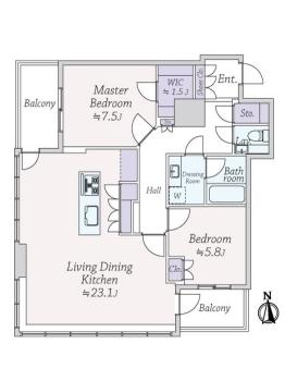 間取り 2LDK 専有面積 86.91m2(26.2坪) 壁芯