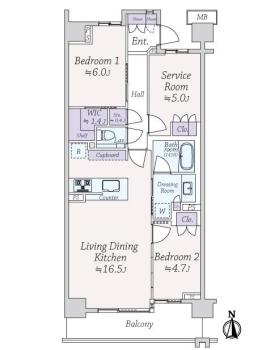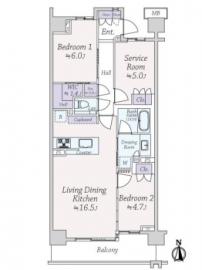 間取り 2SLDK 専有面積 73.16m2(22.1坪) 壁芯