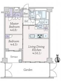 間取り 2LDK 専有面積 54.18m2(16.3坪) 壁芯