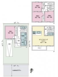 土地面積 84.00m2(25.4坪) 登記簿 別途私道負担317.00m2 建物延面積 100.25m2