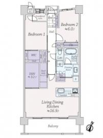 間取り 2LDK 専有面積 80.03m2(24.2坪) 壁芯