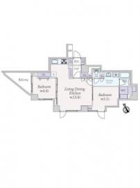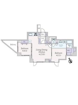 間取り 2LDK 専有面積 61.25m2(18.5坪) 壁芯