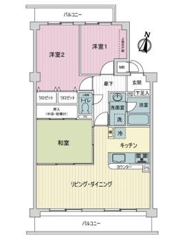 間取り 3LDK 専有面積 72.80m2(22.0坪) 壁芯