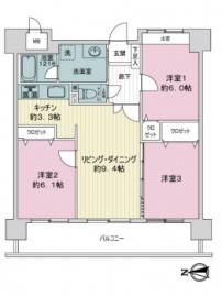 間取り 3LDK 専有面積 66.63m2(20.1坪) 壁芯