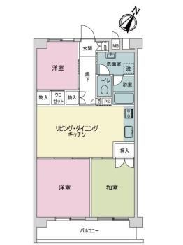 間取り 3LDK 専有面積 63.07m2(19.0坪) 壁芯