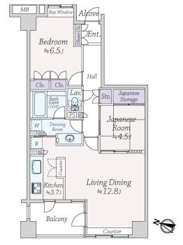 間取り 2LDK 専有面積 66.37m2(20.0坪) 壁芯