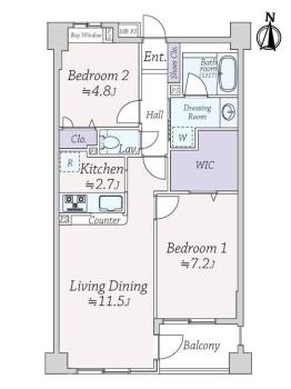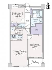 間取り 2LDK 専有面積 60.48m2(18.2坪) 壁芯