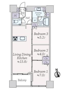 間取り 3LDK 専有面積 72.31m2(21.8坪) 壁芯
