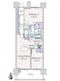 間取り 2LDK 専有面積 63.86m2(19.3坪) 壁芯