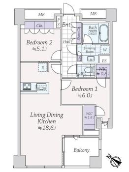 • Bedroom1、2つのウォークインクロゼット完備、お部屋を広々と活用できます
