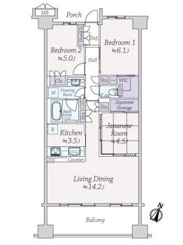 間取り 3LDK 専有面積 74.20m2(22.4坪) 壁芯