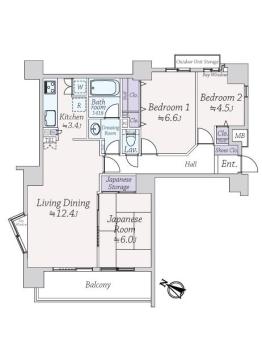 間取り 3LDK 専有面積 75.15m2(22.7坪) 壁芯