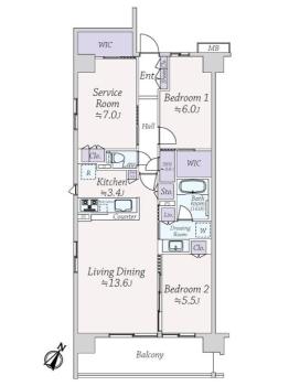 間取り 2SLDK 専有面積 80.75m2(24.4坪) 壁芯