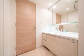 • 身だしなみを整えやすい、三面鏡・シャワー付き洗面化粧台です。