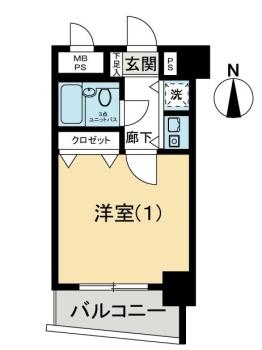 間取り 1K 専有面積 22.32m2(6.7坪) 壁芯