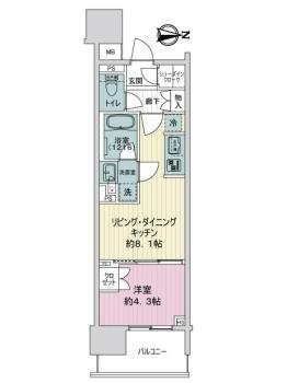 間取り 1LDK 専有面積 32.34m2(9.7坪) 壁芯