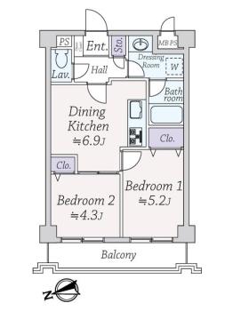 間取り 2DK 専有面積 40.82m2(12.3坪) 壁芯
