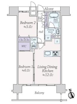 間取り 2LDK 専有面積 53.18m2(16.0坪) 壁芯