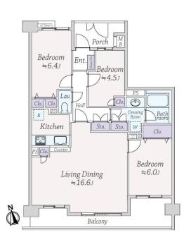 間取り 3LDK 専有面積 81.25m2(24.5坪) 壁芯