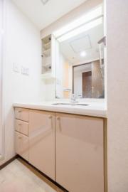 • 鏡付きの洗面台を備え、使いやすい配置の洗面室