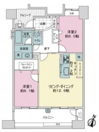間取り 2LDK 専有面積 65.11m2(19.6坪) 壁芯