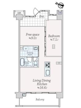 間取り 1LDK 専有面積 70.41m2(21.2坪) 壁芯