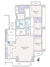 間取り 3LDK 専有面積 162.41m2(49.1坪) 壁芯