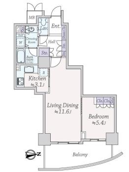 間取り 1LDK 専有面積 50.00m2(15.1坪) 壁芯