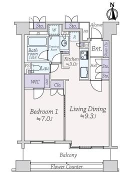 間取り 1LDK 専有面積 50.29m2(15.2坪) 壁芯