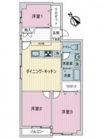 間取り 3DK 専有面積 59.55m2(18.0坪)