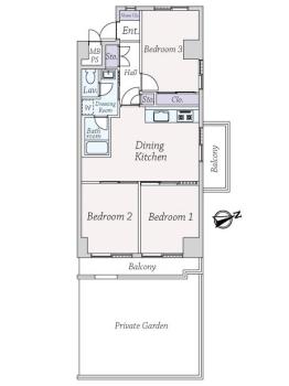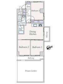 間取り 3DK 専有面積 60.22m2(18.2坪) 壁芯