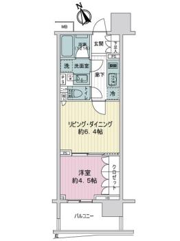 間取り 1LDK 専有面積 32.88m2(9.9坪) 壁芯