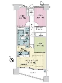 間取り 3LDK 専有面積 75.37m2(22.7坪) 壁芯
