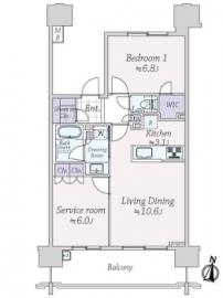 間取り 1SLDK 専有面積 58.80m2(17.7坪) 壁芯