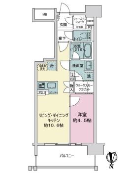 間取り 1LDK 専有面積 38.33m2(11.5坪) 壁芯