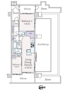 間取り 2LDK 専有面積 47.45m2(14.3坪) 壁芯