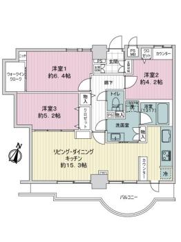 間取り 3LDK 専有面積 71.26m2(21.5坪) 壁芯