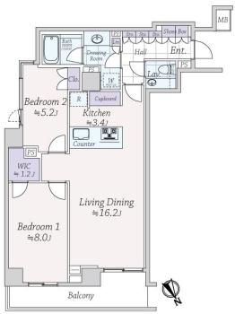 間取り 2LDK 専有面積 73.56m2(22.2坪) 壁芯