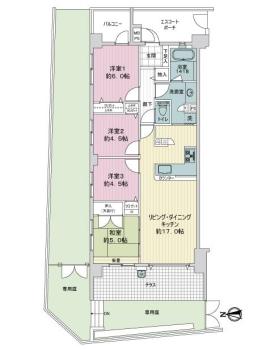 バルコニー 3.51m2 主要採光方向 西