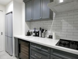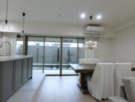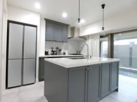 • 開放的なキッチンスペース、タッチレス水栓、扉は輸入家具を使用