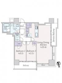 間取り 2LDK 専有面積 73.86m2(22.3坪) 壁芯