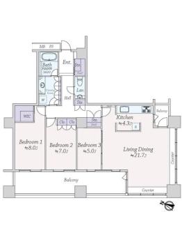 間取り 3LDK 専有面積 106.25m2(32.1坪) 壁芯