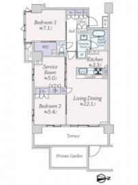間取り 2SLDK 専有面積 73.84m2(22.3坪) 壁芯