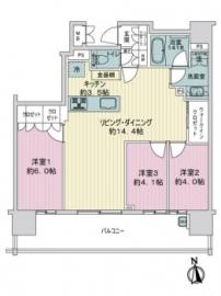 間取り 3LDK 専有面積 68.91m2(20.8坪) 壁芯