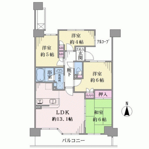 間取り 4LDK 専有面積 70.07m2(21.1坪) 壁芯