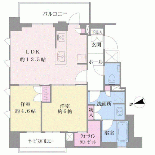 間取り 2LDK 専有面積 61.09m2(18.4坪) 壁芯