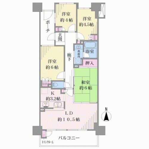 間取り 4LDK 専有面積 73.63m2(22.2坪) 壁芯