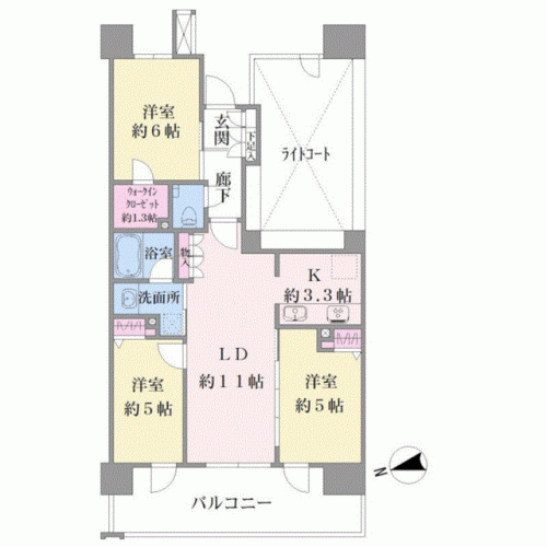 間取り 3LDK 専有面積 65.28m2(19.7坪) 壁芯